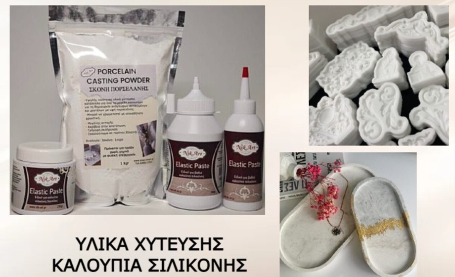 Η συλλογή μας περιλαμβάνει ελαστικά διακοσμητικά για ποικίλες εφαρμογές σε κατασκευές και έπιπλα, καθώς και αντικείμενα από ρητίνη που παράγονται αποκλειστικά με τη δική μας πρωτοποριακή Porcelain Casting Powder Nik-Art, μια σκόνη πορσελάνης κορυφαίας ποιότητας που έχουμε αναπτύξει στο εργαστήριό μας. Παράλληλα, διαθέτουμε καλούπια σιλικόνης υψηλής ακρίβειας, σχεδιασμένα για να προσφέρουν απόλυτη λεπτομέρεια και αντοχή στη χρήση.