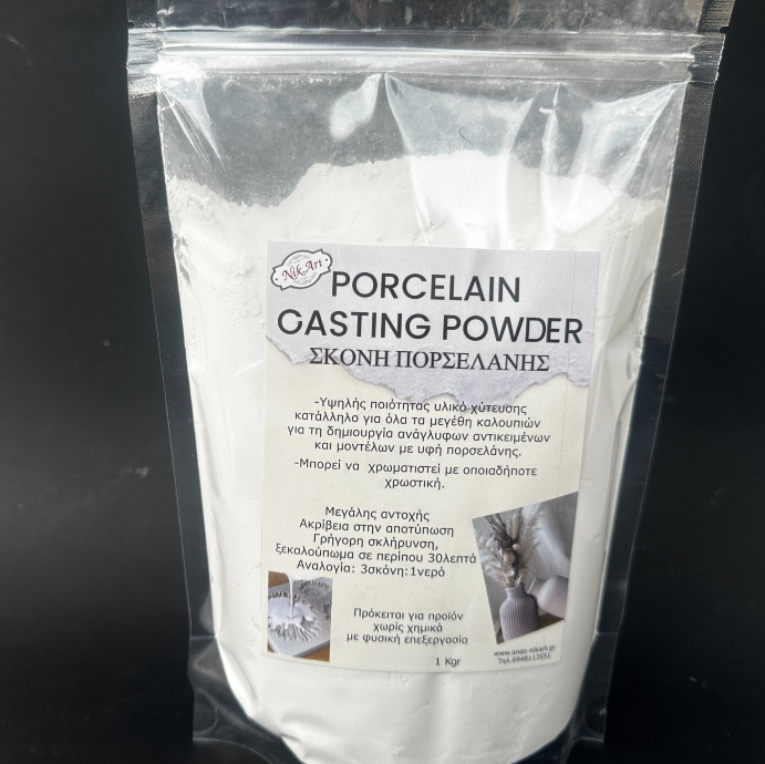 Η Porcelain Casting Powder NikArt(σκόνη πορσελάνης) ένα εξειδικευμένο  υλικό κορυφαίας ποιότητα με άψογη υφή ,ανθεκτικότητα και λεπτομέρεια σε κάθε έργο χωρίς κανένα πρόσθετο  .